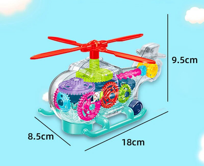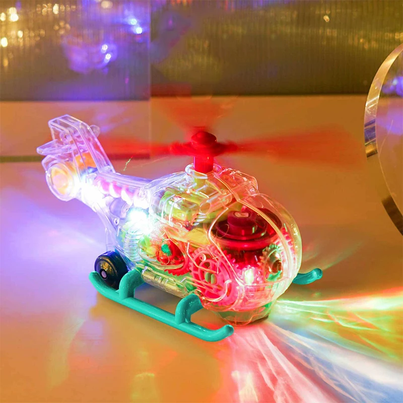 Прозрачный и светящийся с музыкальными эффектами, движущимися шестеренками станет для ребенка любимой игрушкой. Вертолет вызывает положительные эмоции и длительный интерес к игре за счет разностороннего функционала и необычных элементов. Вертолет особенно нравится детям от 3 лет!